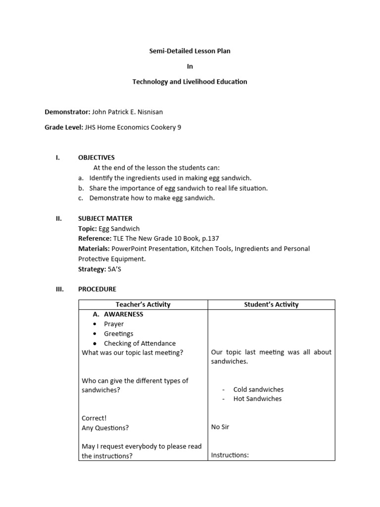 4A format Lesson Plan Copy DETAILED LESSON PLAN (4A Format) School