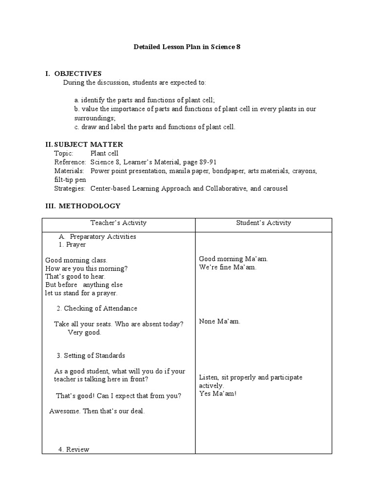 Detailed Science Lesson Plan 1 PDF Learning Teachers
