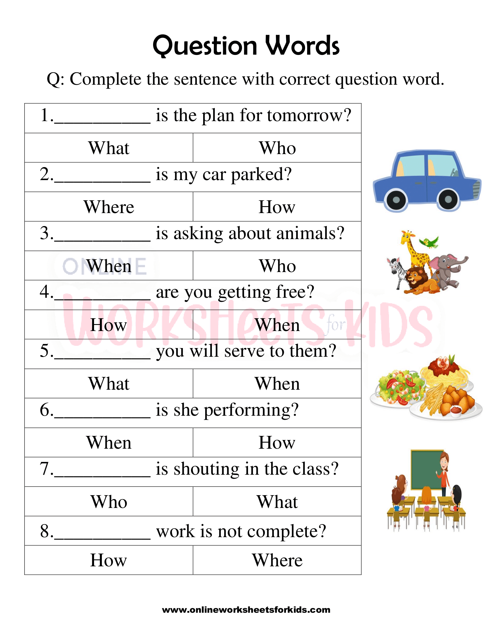 Printable Question Words Practice Worksheets Writing Questions