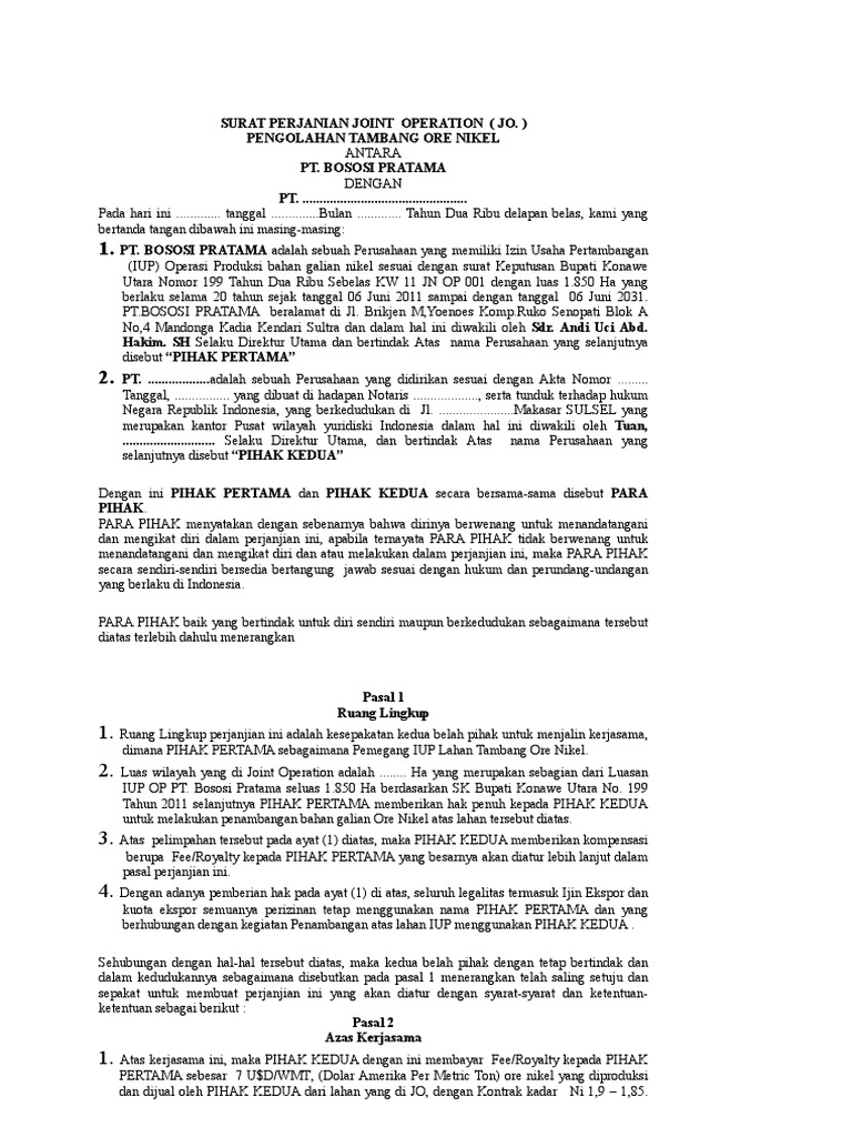 Contoh Letter Of Agreement Kerja Sama Bahasa Indonesia Doc Contoh