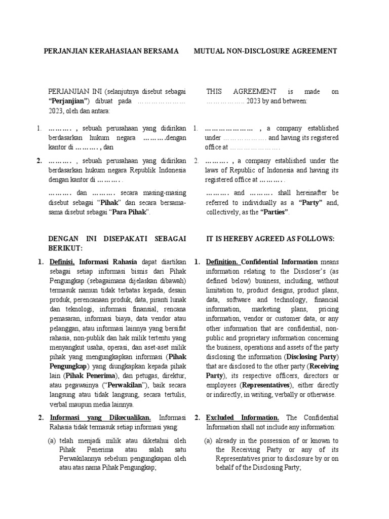 Non Disclosure Agreement Bilingual ENG & BAHASA PDF