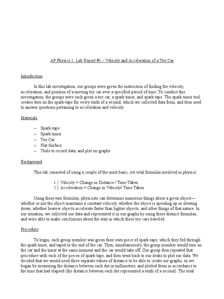 AP Physics Lab Report 1 PDF Velocity Acceleration