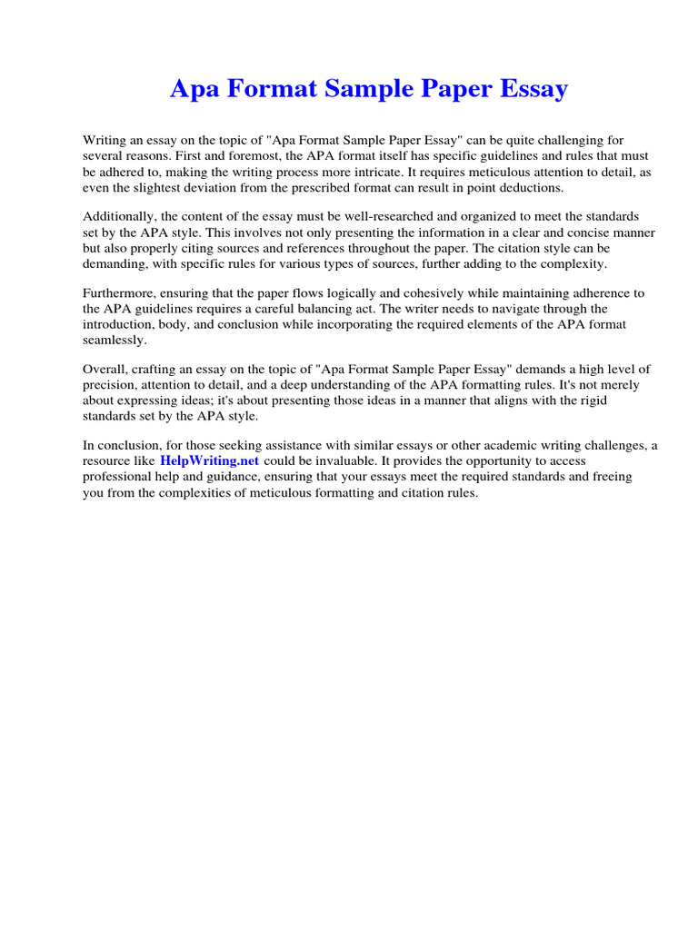 Apa Format Sample Paper Essay PDF Apa Style Essays