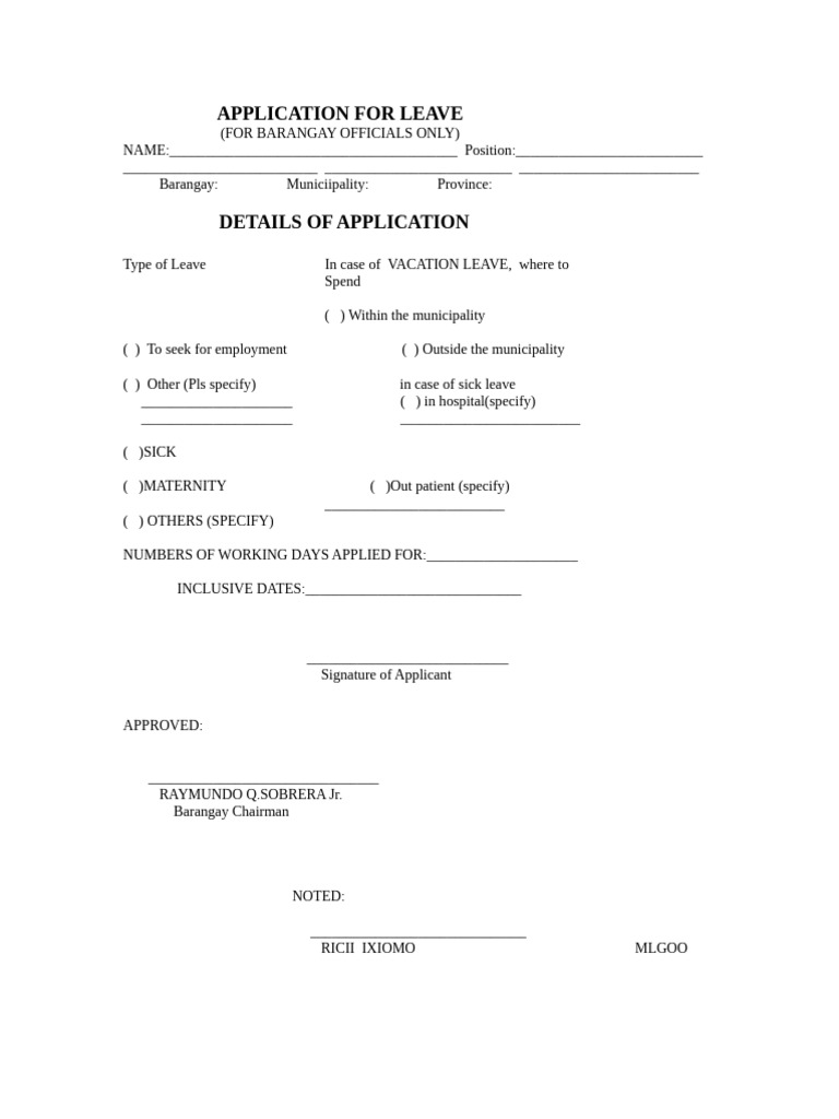 APPLICATION FOR LEAVE PDF