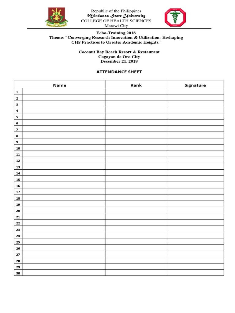Attendance Sheet Name Rank Signature PDF