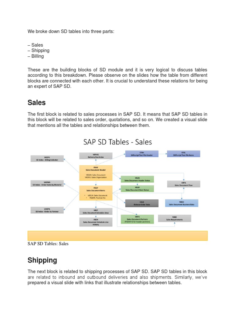 Sap SD Tables, Sales Shipping, Billing PDF
