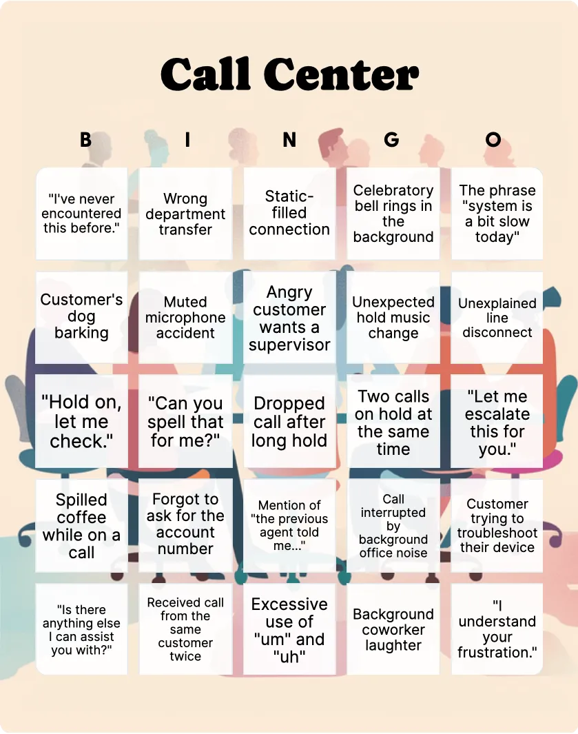 Call Center Bingo Printable & Customizable Bingo Card Creator