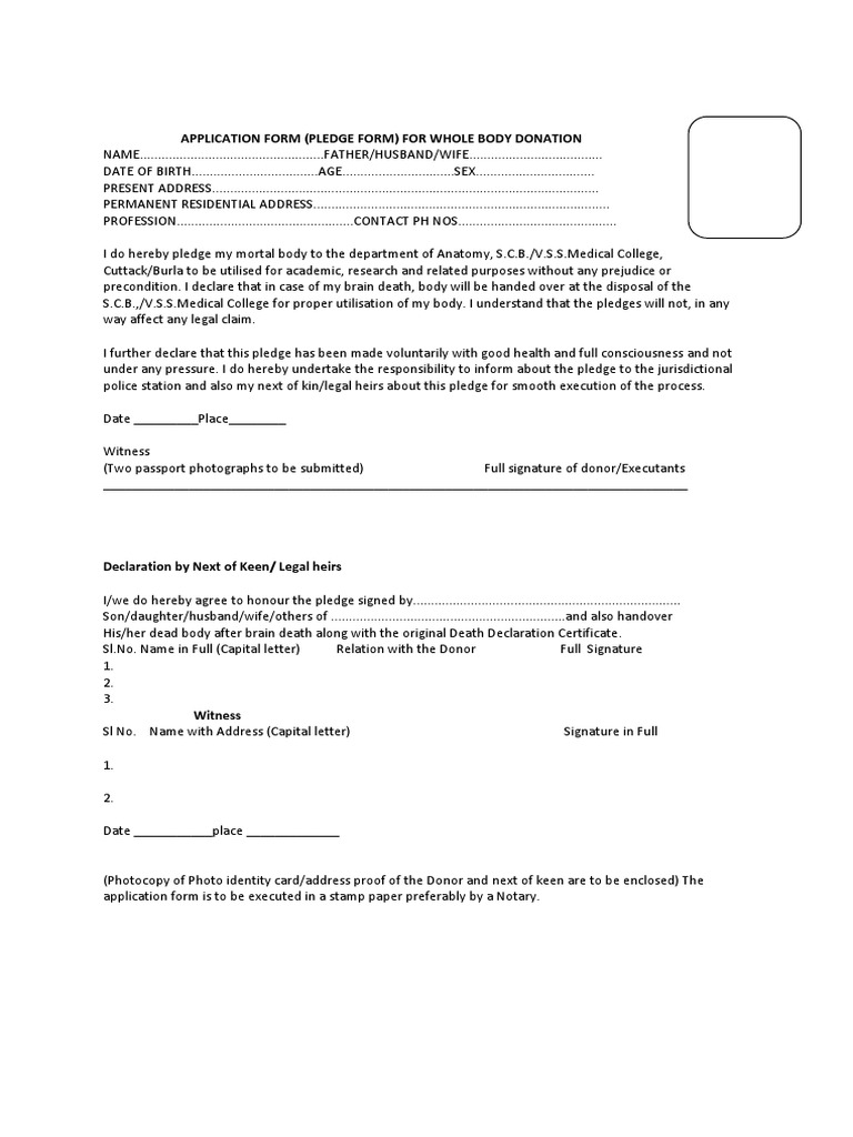 Application Form (Pledge Form) For Whole Body Donation PDF