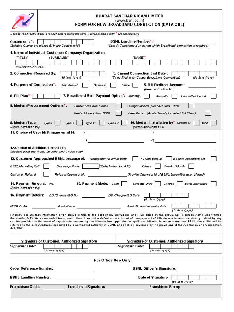 How to Fill the Form for BSNL Broadband Connection? TechnicalKyo