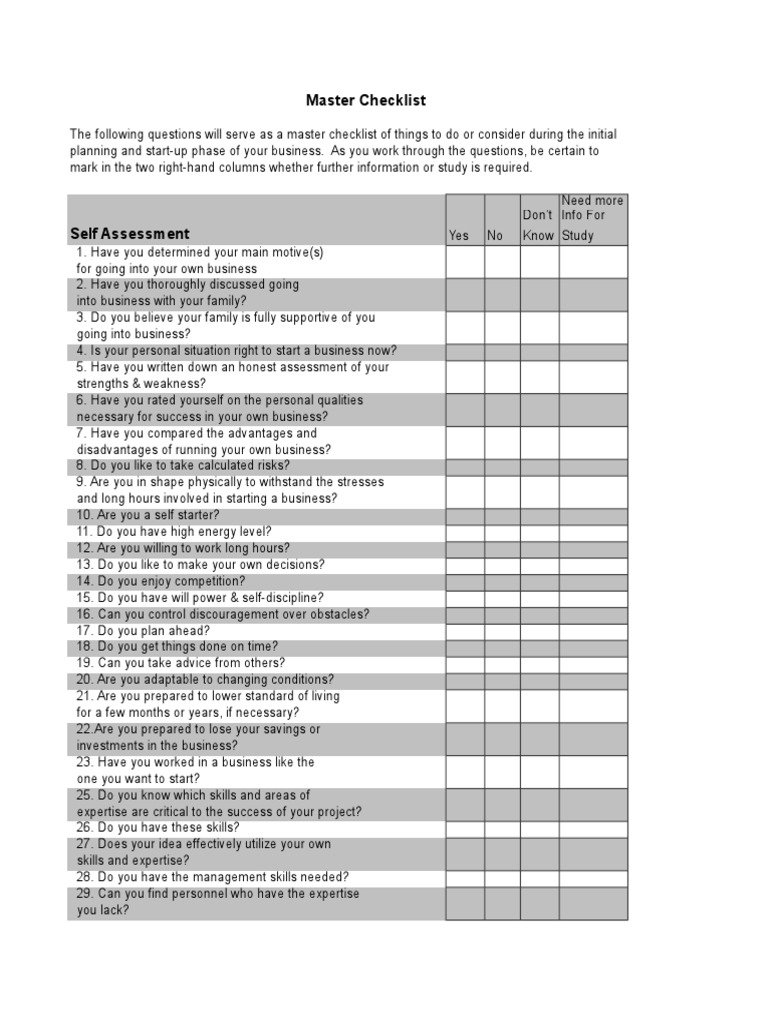 Business Plan Check List Business Startup Checklist vrogue.co