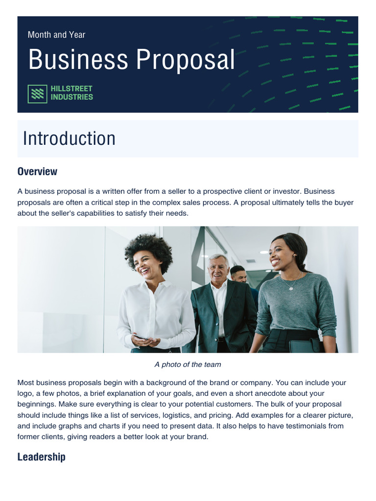By definition, a business proposal is a written offer sent by companies to prospective buyers or sponsors. Customize your proposal to address their needs. 100k+ visitors in the past month Your tone should appeal to. Focus on the major benefits, using theme statements and benefit tables to clearly.