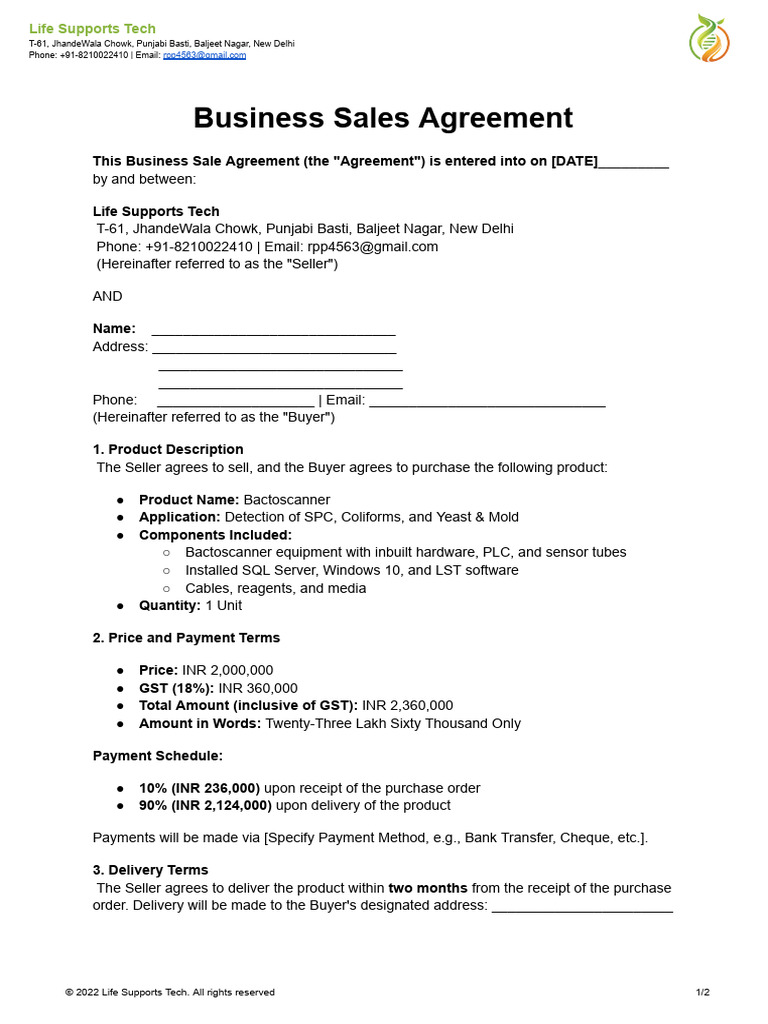 Purchase Agreement, Purchase and Sale Contract, Contract of Sales