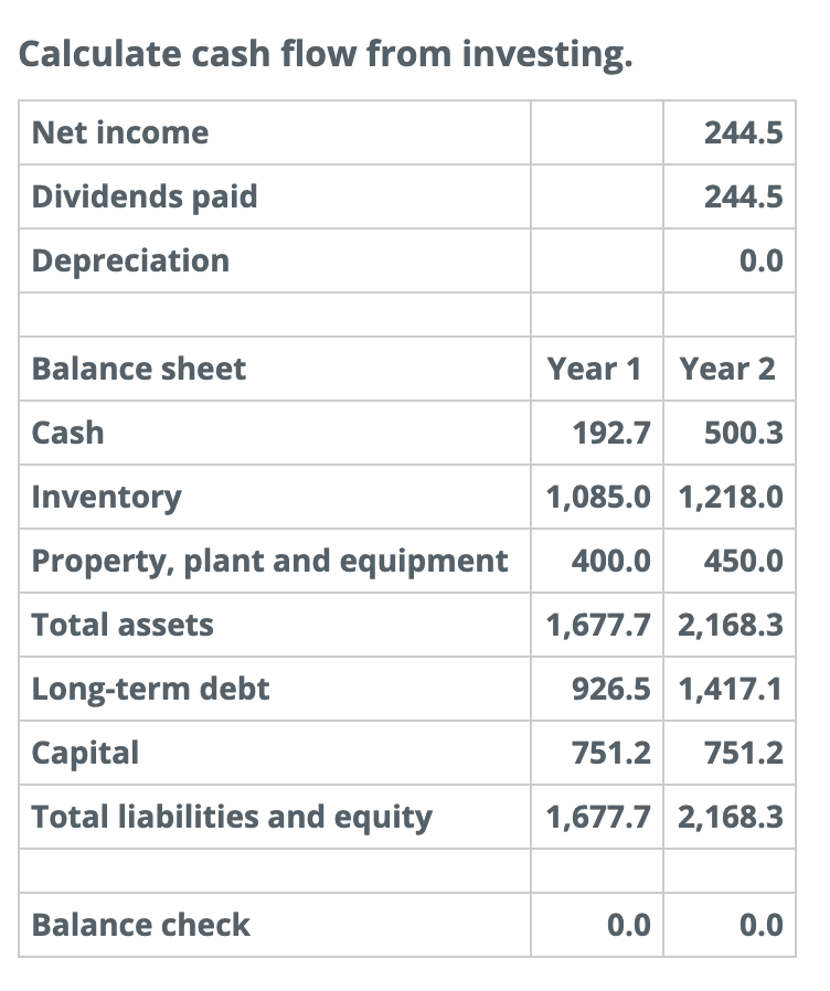Solved Calculate cash flow from investing. Net 244.5