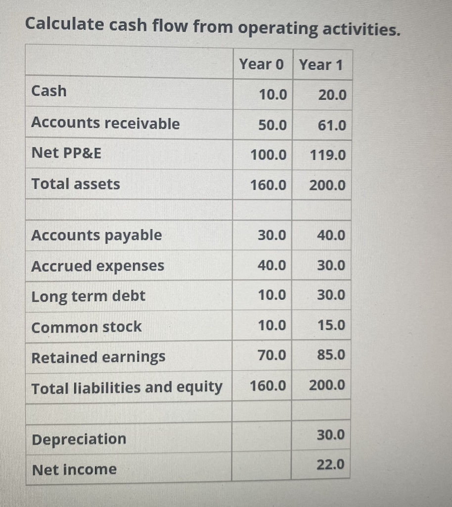Solved Calculate cash flow from investing activities. Year 0