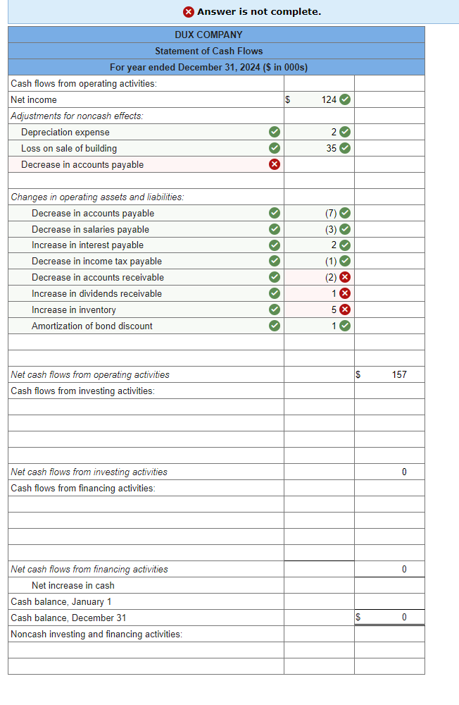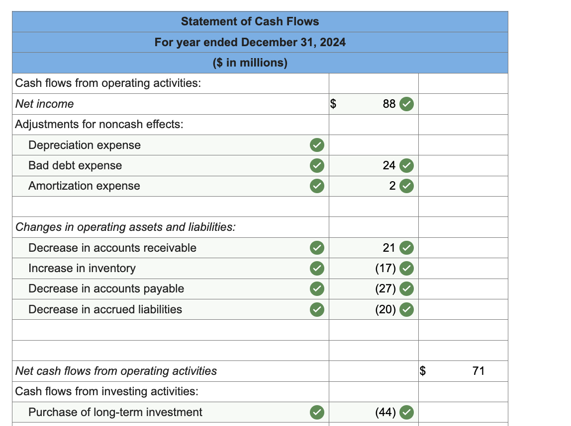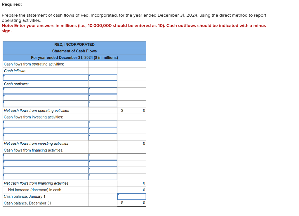 SOLVED Prepare the statement of cash flows for 2024 using the direct
