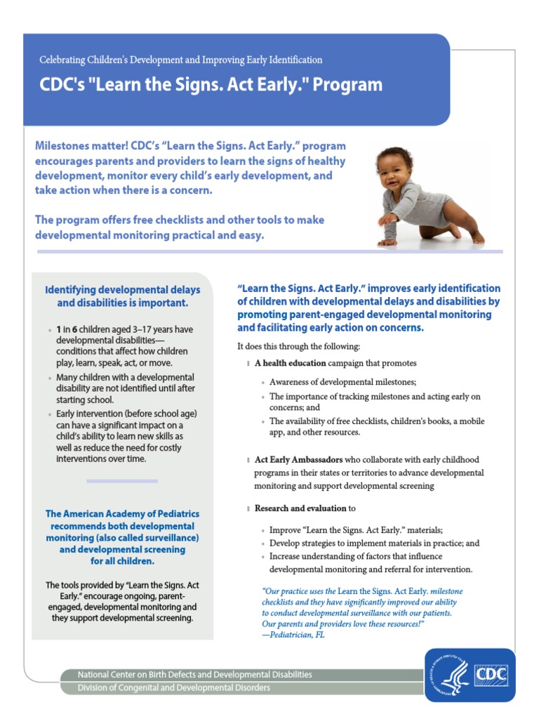 Act early.” tools to track and celebrate children’s developmental milestones from 2 months to 5. The centers for disease control and prevention’s (cdc) national center on birth defects and developmental disabilities (ncbddd), in. Use cdc’s “learn the signs.