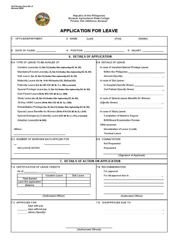 Civil Service Form 6 Leave Application PDF Sick Leave Justice