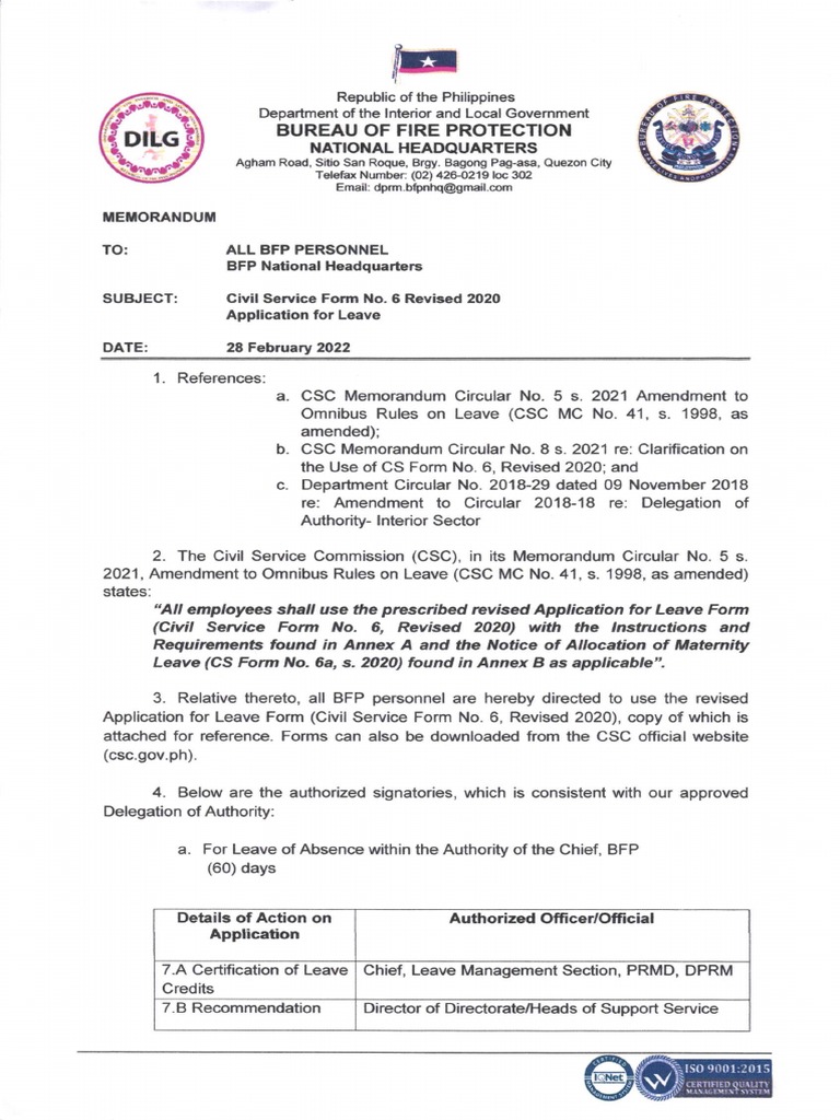 MEMORANDUMCivil Service Form No. 6 Revised 2020 APPLICATION FOR LEAVE
