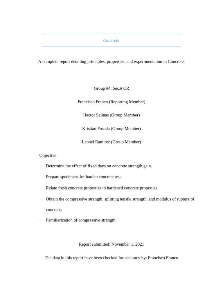 Concrete Lab Report PDF Concrete Strength Of Materials
