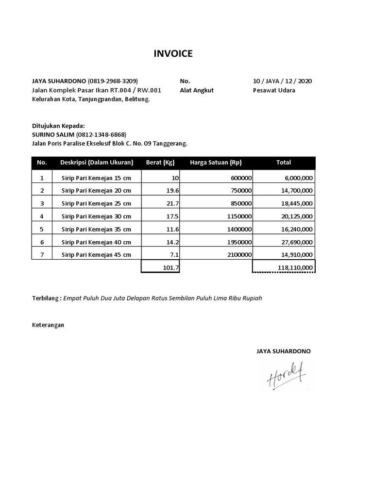 9 Contoh Format Invoice Excel Xls Pdf Doc Go Edukasi Riset Ponasa