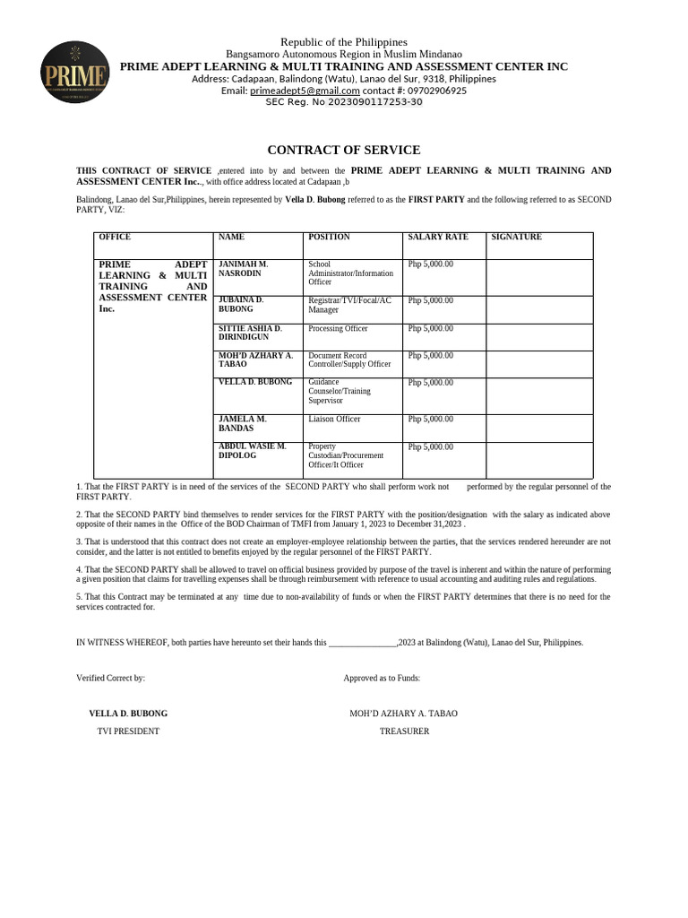 CONTRACT OF SERVICE V PDF
