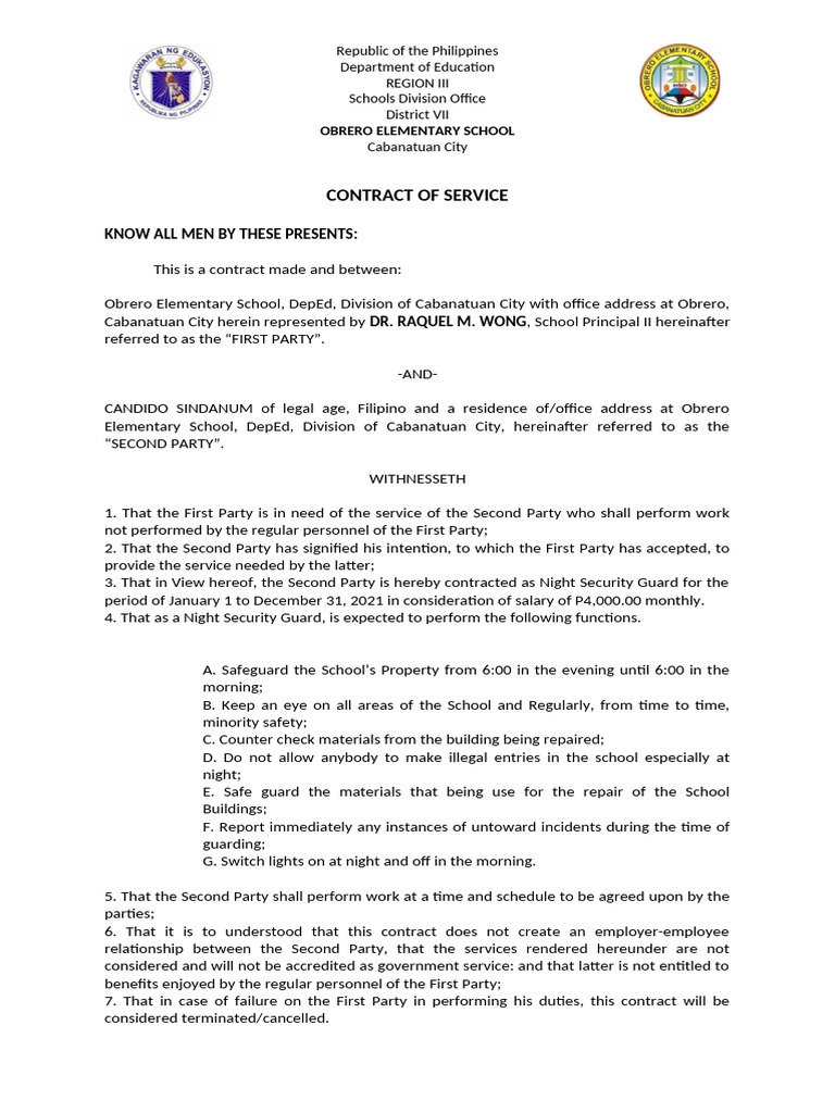 Contract OF Service CONTRACT OF SERVICE KNOW ALL MEN BY THESE