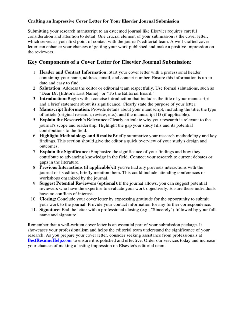 How to Write a Cover Letter for Your Manuscript Elsevier