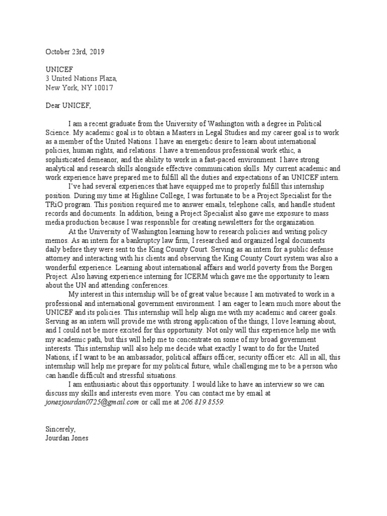 Jourdan UNICEF Cover Letter PDF Internship Job Hunting