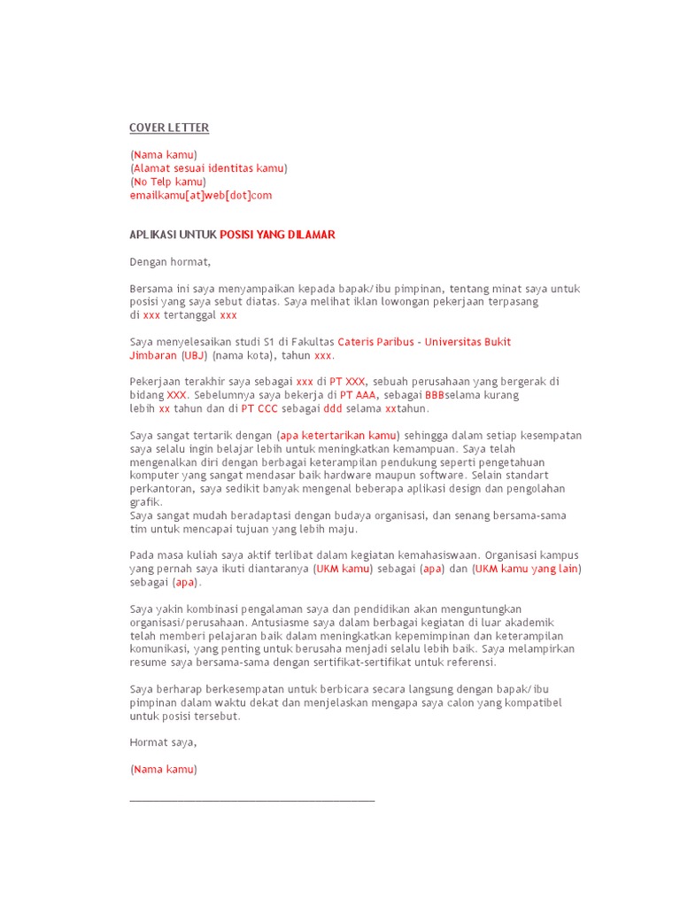 Contoh Cover Letter Bahasa Indonesia PDF