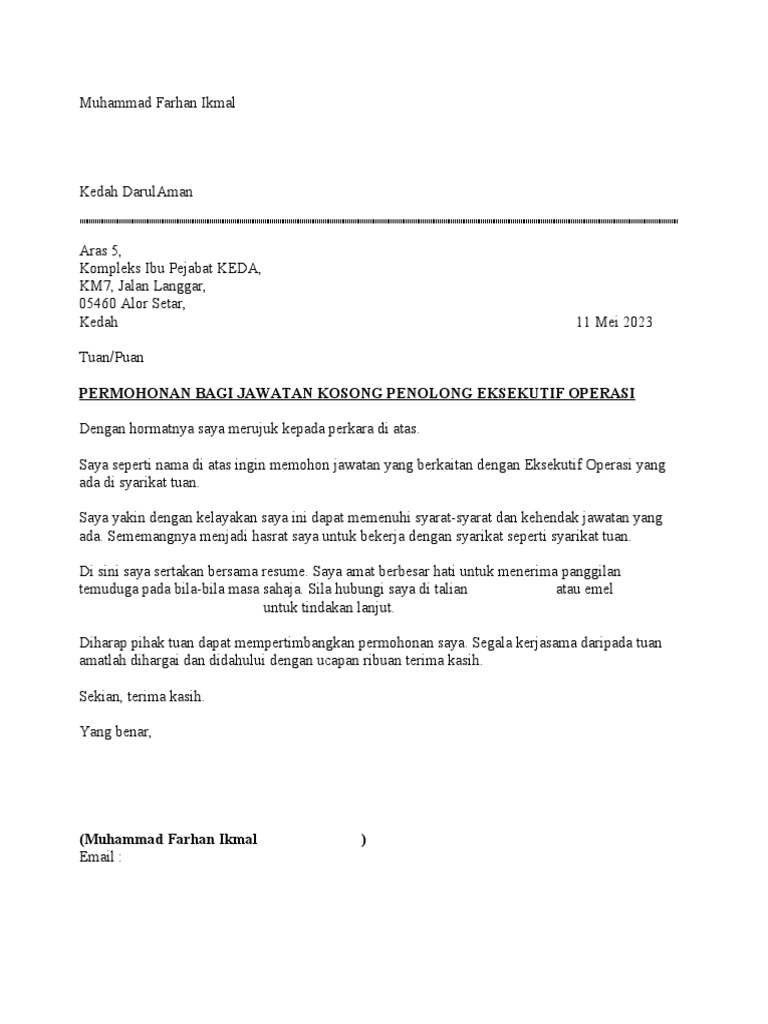 Contoh Cover Letter Bahasa Melayu Melalui Email AlinafinArroyo
