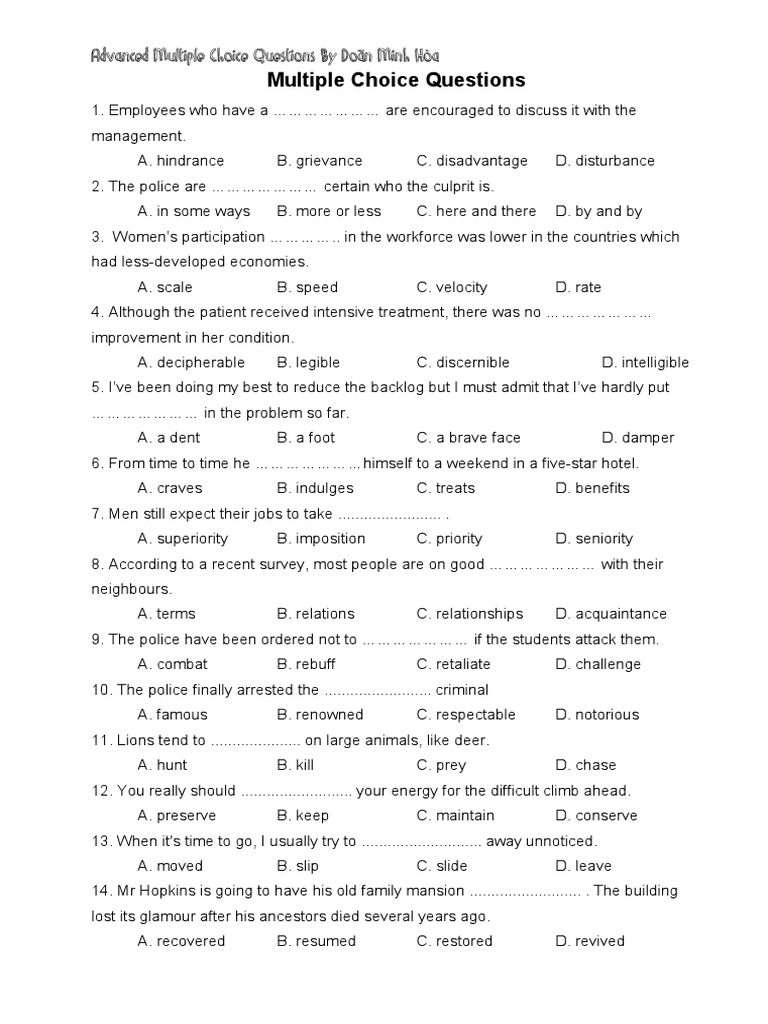 Multiple Choice Questions 1 PDF