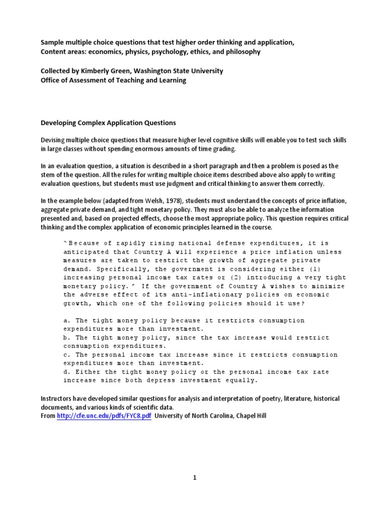 Creating Multiple Choice Questions That Test For Critical Thinking