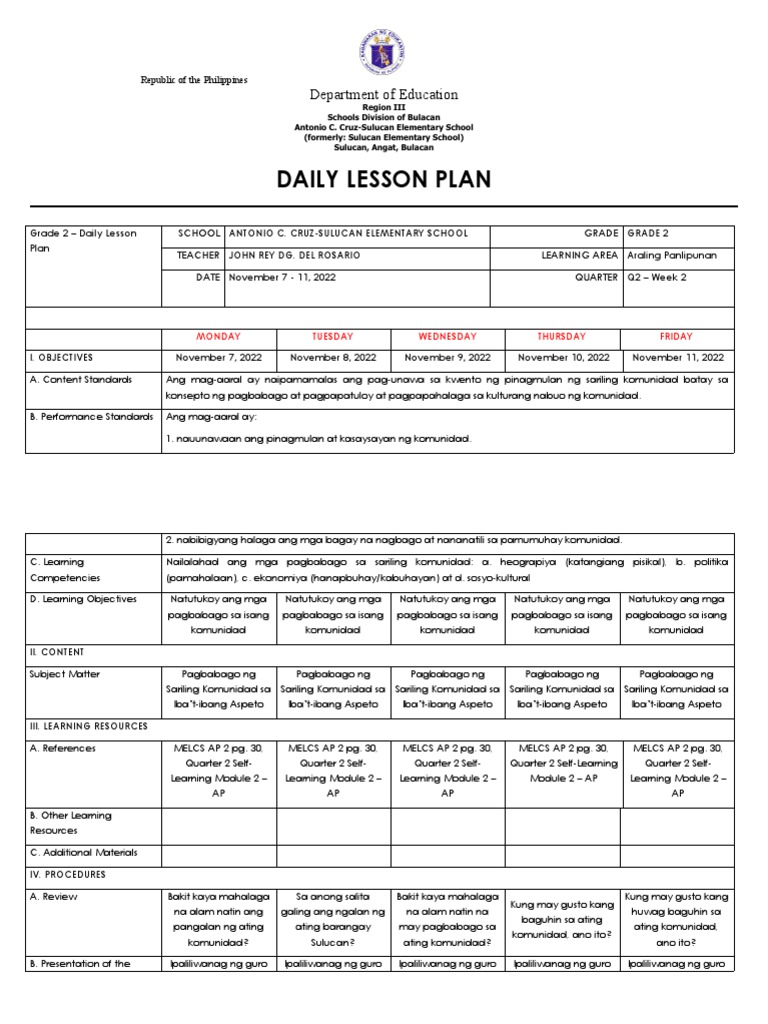 Reviewing previous lesson and activating prior knowledge b. The use of a dll. It also helps teachers guarantee that learners reach those targets. A daily lesson log (dll) is a standard template that covers a week’s worth of lessons in one tabular format. Lesson planning helps teachers set learning targets for learners.