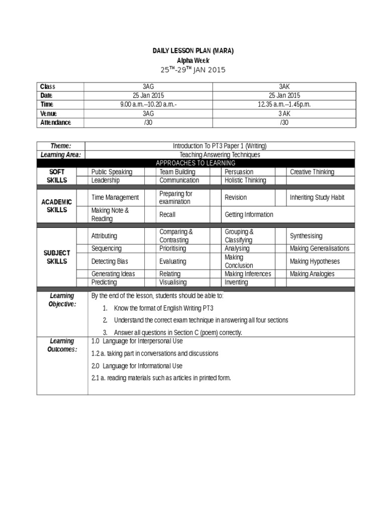 Daily Lesson Plan (Sample) PDF Percentile Learning