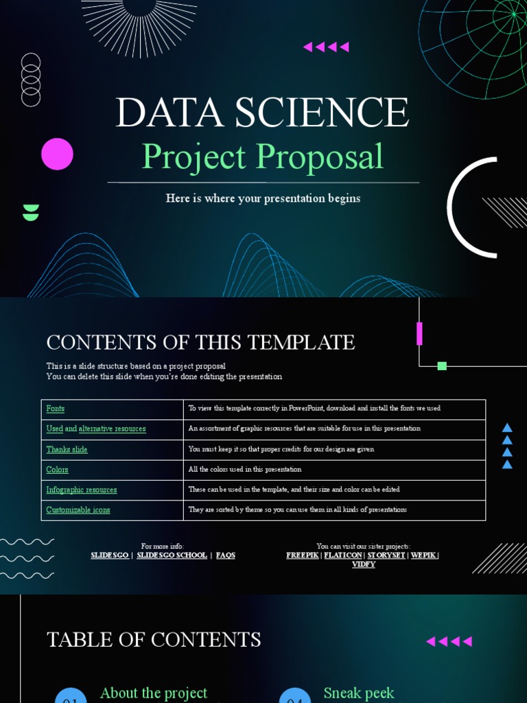 Table Of Contents Data Science Project Proposal One Pager Sample