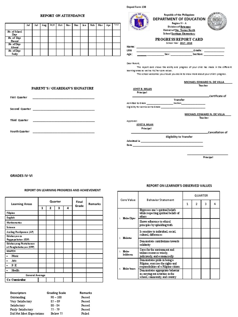 DepEd Form 138 For Intermediate Pupils PDF Cognition