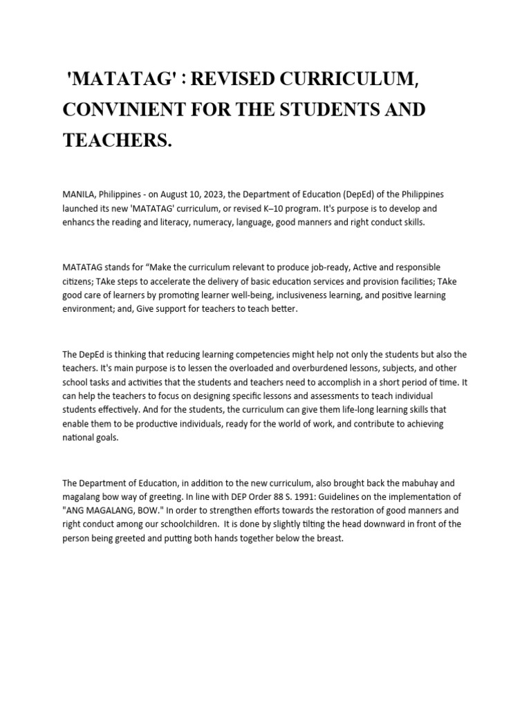 The matatag curriculum was launched on august 10, 2023. Deped matatag curriculum guide is a detailed document highlighting learning and teaching strategies grade by grade. Get your free copy of the official deped matatag curriculum guides. Get your free copy of deped matatag textbooks for this school year. Learn about their content, purpose, and how they support the new.