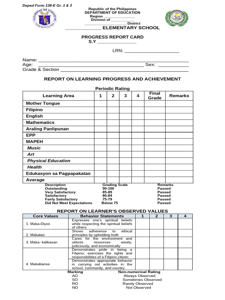 The School Form 9 (Sf9) Or The Learner’s Progress Report Card Is Formerly Known As Form 138.