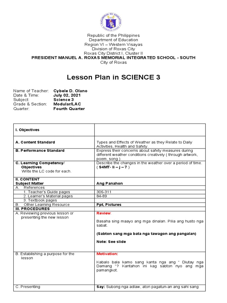 Sample Of 7es Detailed Lesson Plan Printable Templates Free