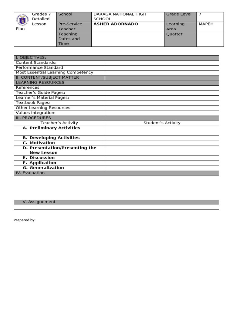 Detailed Lesson Plan Template 1 1 PDF Teachers Teaching