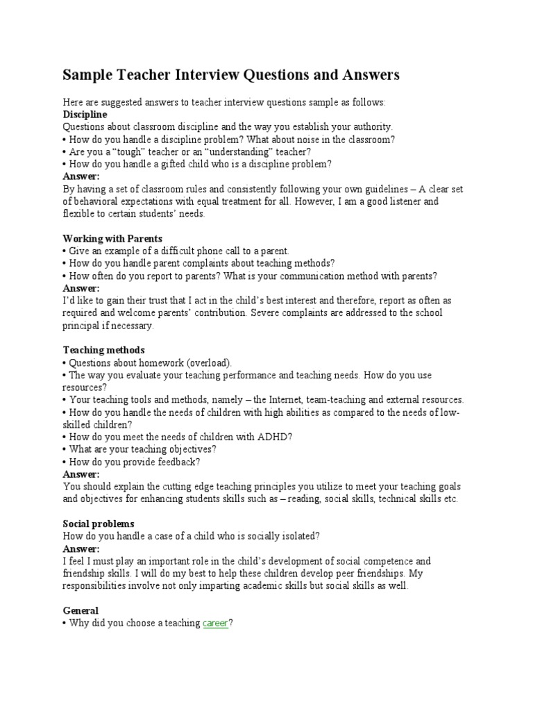 Sample Teacher Interview Questions and Answers Discipline PDF
