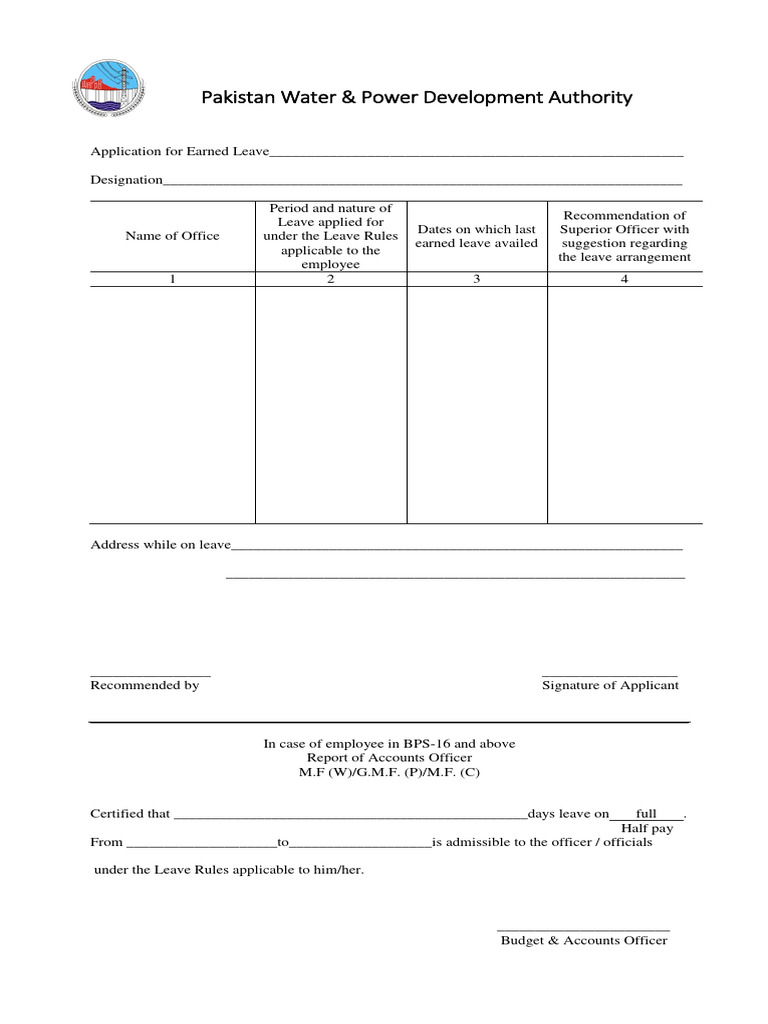 WAPDA Earned Leave Form PDF Career & Growth Business