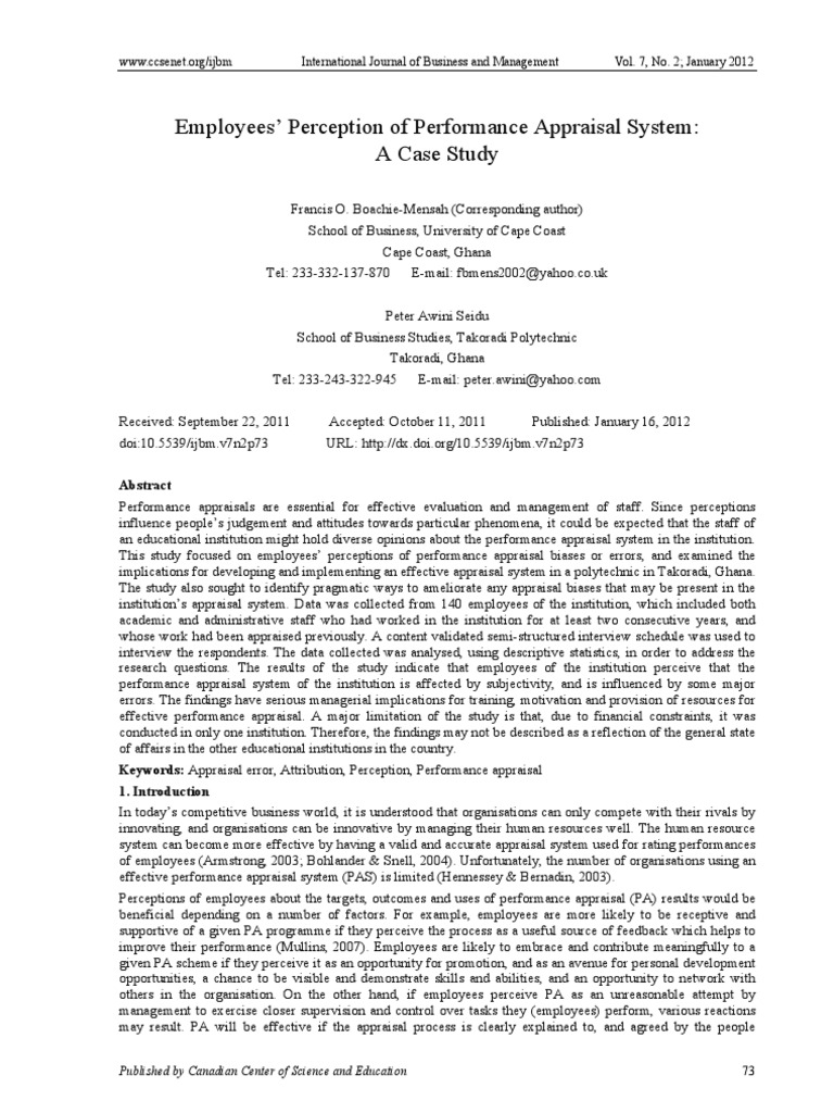 Employees' Perception of Performance Appraisal System PDF