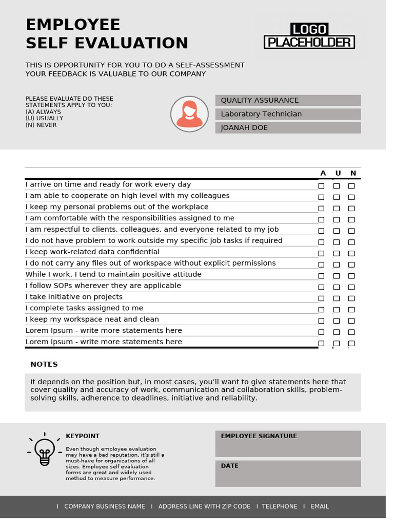 Download free editable self evaluation form to help employees reflect on performance, identify skill gaps, and set goals using ratings and.