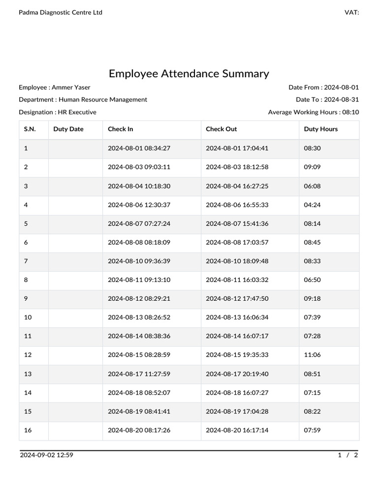 Employee Attendance Report Employee Attendance Excel Report Odoo