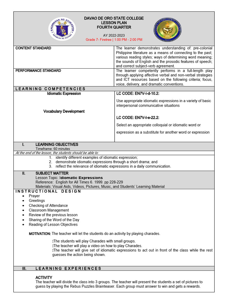 4AS DETAILED LESSON PLAN PDF