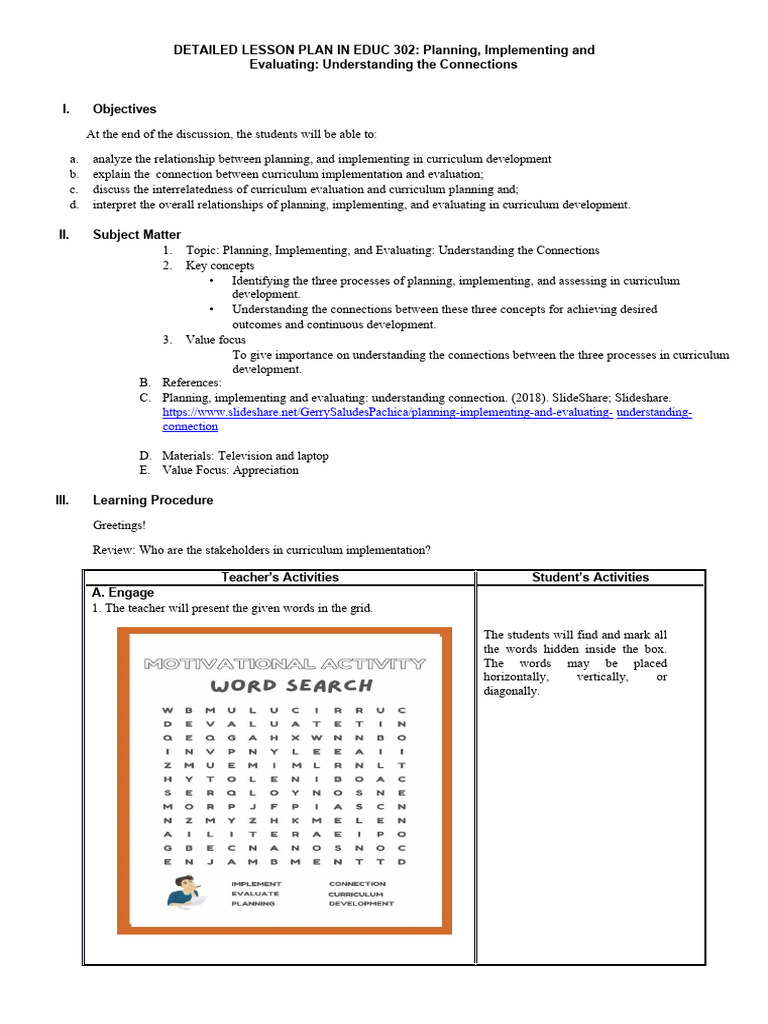 5es Detailed Lesson Plan Sample Educ100 Download Free PDF