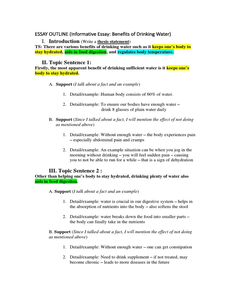 Example Essay Outline (Informative Essay Benefits of Drinking Water