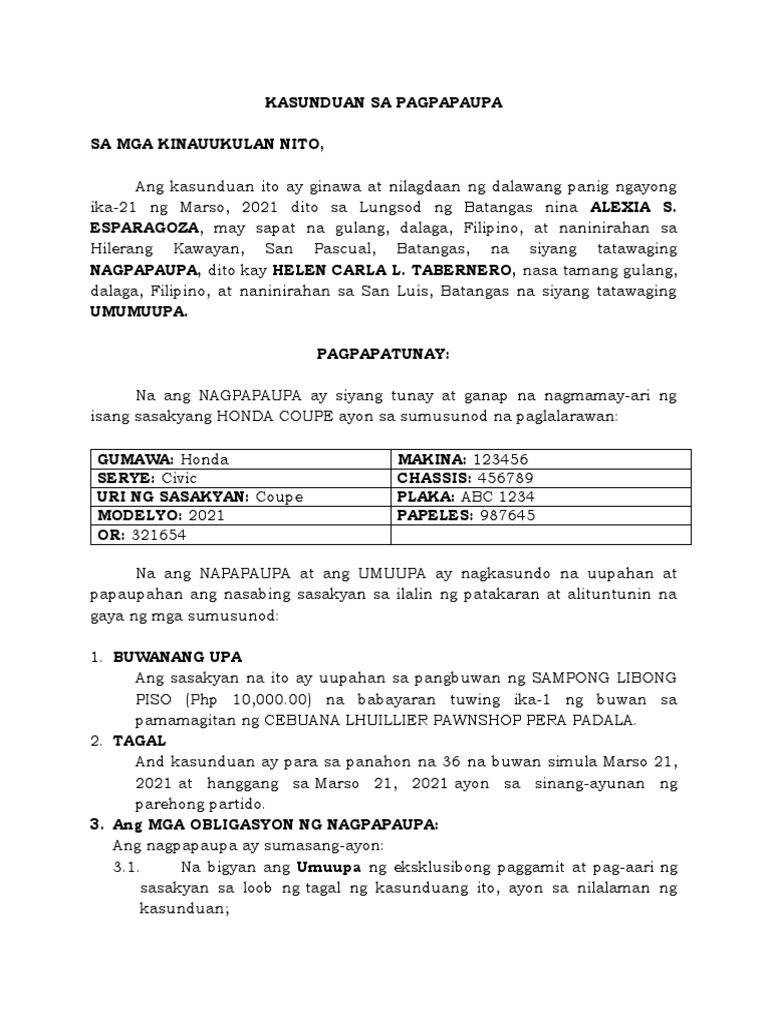 House Rental Contract Sample Philippines Tagalog at Keith Herrera blog