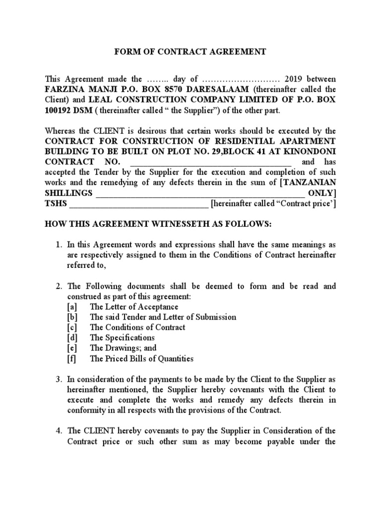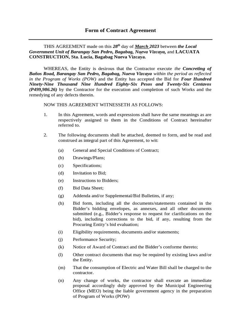 Form of Contract Agreement banos road PDF Civil Law (Legal System